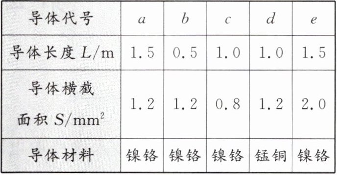 9.(枣庄市中考)小亮想探究“在温度一定的条件下,导体电阻与长度、横截面积的关系”。他已选好代号为“a”的导体,他还应选用表中哪两个导体进行实验探究(