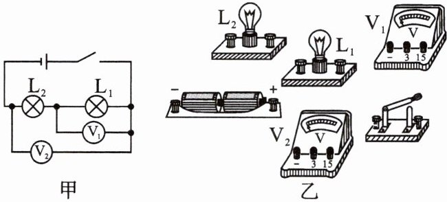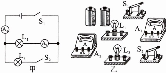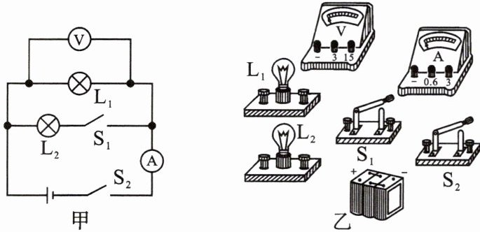 5. 按照图甲所示的电路图,将图乙中各元件连接起来。