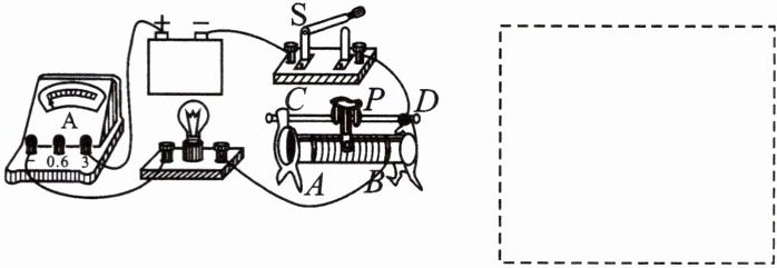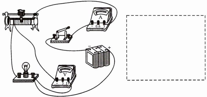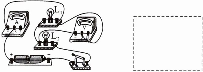 3. 根据实物电路,在虚线框中画出对应的电路图。