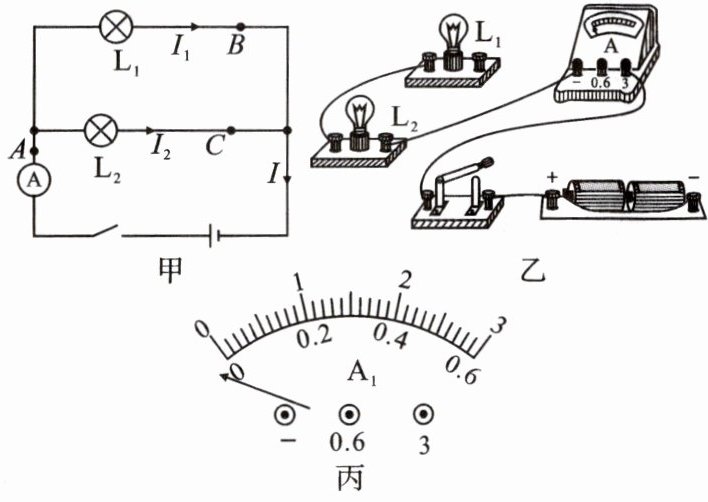 3. 如图所示,在探究“并联电路的电流特点”的实验中,小明设计了如图甲所示的电路进行实验。