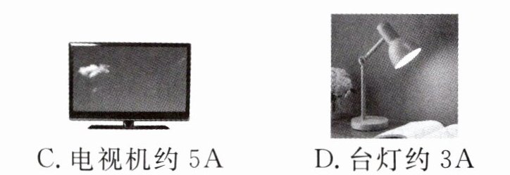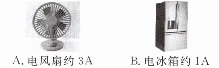 1. 如图所示为我们常见的家用电器,关于它们正常工作时的电流,下列说法中合理的是(