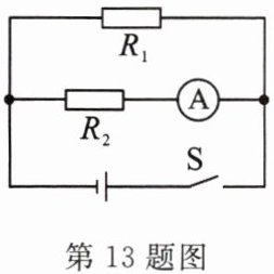 13. 在如图所示的电路中,$R_{1}= 15Ω$,$R_{2}= 10Ω$,闭合开关后电流表的示数为 $0.3A$,则电源电压为