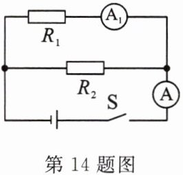 解:由电路图可知,$R_{1}$与$R_{2}$并联,电流表A测干路电流,电流表$A_{1}$测$R_{1}$支路的电流。