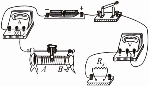 (4) 实验过程中,突然出现电流表有示数,电压表无示数,若电路故障在电阻$R_x$,则原因可能是____。