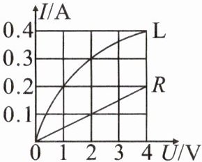 D.仅把$L$、$R$串联在电路上,当电流是$0.2A$时,它们两端总电压是$4V$