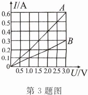 3. 如图是电阻$A$、$B的I-U$图像。由图可知:将电阻$A$、$B$串联后接入电路,当通过$A的电流为0.3A$时,$A和B$两端的总电压是