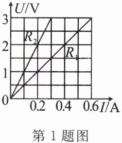 1. 如图是$R_{1}$、$R_{2}两电阻的U-I$图像。将$R_{1}$、$R_{2}$并联后接入电路,结合图中信息可知(