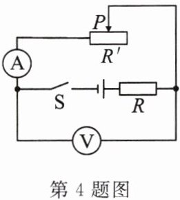 4. (滨州市中考)如图所示,电源电压恒定不变,闭合开关后,当滑动变阻器的滑片P向左端滑动时,下列说法正确的是(