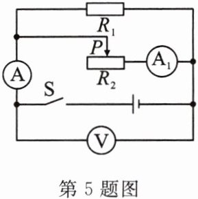 5. (烟台市中考)如图所示,电源电压保持不变,闭合开关S,当滑动变阻器的滑片P向右滑动的过程中,下列说法正确的是(