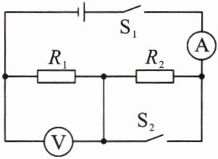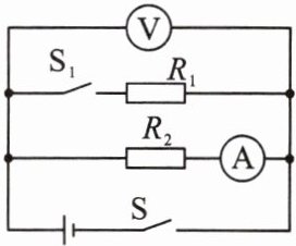 1. 如图所示的电路中,电源电压不变,闭合开关$S_1,$电压表和电流表有示数,接着再闭合开关$S_2,$下列说法正确的是(