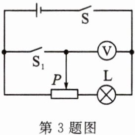 3. (江西省中考)如图所示,当开关$S$、$S_1$闭合时,滑动变阻器的滑片$P$向左移动,灯泡$L$的亮度