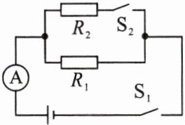 1. 如图所示,电源电压不变,当开关$S_1$、$S_2$闭合时,电流表示数为$0.8A$,开关$S_2$断开后,电流表示数改变了$0.5A$,则$R_1和R_2$的阻值之比为(