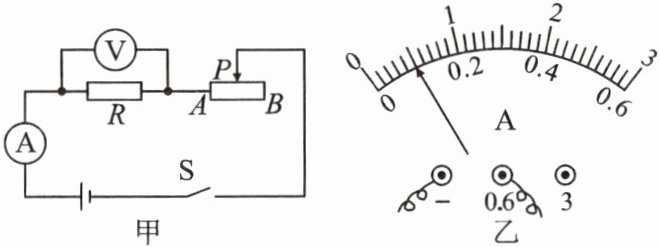 (选填“A”或“B”)端。(4)某次实验中,电流表指针偏转如图乙所示,示数为