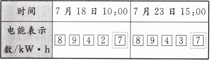16. [物理学与日常生活]小亮想了解电视机在待机状态下的功率,他让电视机处于待机状态,其他用电器均处于断电状态。记下开始的时刻和电能表的示数,几天后再回到该房中,然后记下结束的时刻和电能表的示数,记录数据如下表所示。
