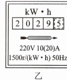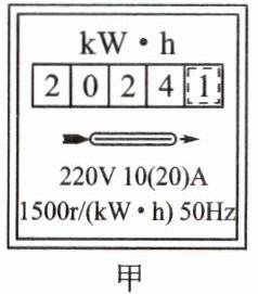 12. [物理学与日常生活]李老师出差时恰逢抄表日,家中电能表的示数如图甲所示,出差返回时发现家中有一盏$15W$的台灯亮着,检查其他电器发现在出差时均已切断电源,再查看电能表,示数如图乙所示,则这盏台灯消耗的电能为