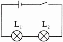 2. 按如图连接电路,闭合开关,观察到灯 $ L_1 $ 比 $ L_2 $ 亮。灯 $ L_1 $、$ L_2 $ 的电流、电压和电阻分别记为 $ I_1 $、$ I_2 $、$ U_1 $、$ U_2 $、$ R_1 $、$ R_2 $,下列说法正确的是(