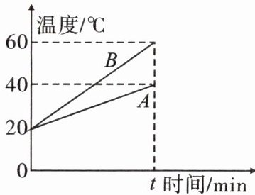 6. 用相同的电加热器分别对质量相等的 $A$ 和 $B$ 两种液体加热,如图所示是 $A$ 和 $B$ 两种液体的温度随加热时间变化的图像。则 $A$ 与 $B$ 两种液体的比热容之比为
