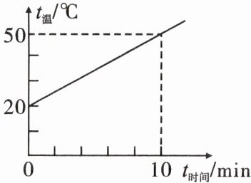解:由图像可知,该物质10min升高的温度:Δt=50℃-20℃=30℃,由Q吸=cmΔt得,该物质的比热容:c=Q吸/mΔt=7.2×10³J/(0.1kg×30℃)=2.4×10³J/(kg·℃)。