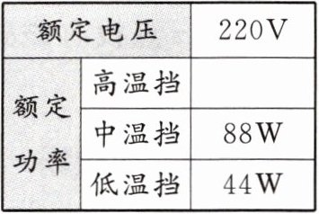 挡(选填“高温”“中温”或“低温”);高温挡的额定功率为176