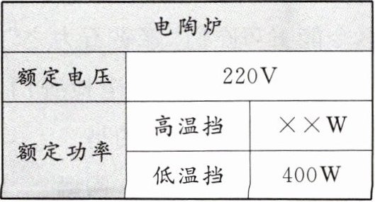 (1)解:旋钮开关放在1位置时,两电阻串联,总电阻较大,电源电压不变,根据P=U²/R可知总功率较小,电陶炉处于低温挡,根据P=U²/R可知Rₛₑᵣᵢₑₛ=U²/Pₗₒw=(220V)²/400W=121Ω;根据电阻串联的特点可知:R₁=Rₛₑᵣᵢₑₛ-R₂=121Ω−72.6Ω=48.4Ω;
