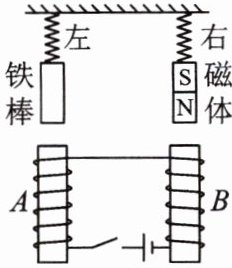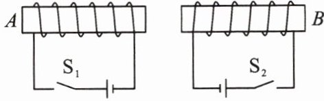 9. 如图所示,闭合开关$S_1、$$S_2,$两个通电螺线管的相互作用情况以及A、B端的极性分别是(