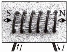 12. 为了研究通电螺线管外部的磁场分布情况,可以螺线管的两端放上小磁针,在硬纸板上均匀地撒满铁屑。通电后轻敲纸板,小磁针的指向和铁屑的排列情况如图所示。请回答下列问题: