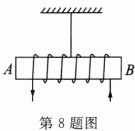 8. 1820年,安培在科学院例会上做了一个实验,引起了众科学家的兴趣。如图所示,把通电螺线管沿东西方向水平悬挂起来,然后给导线通电,会发生的现象是(
