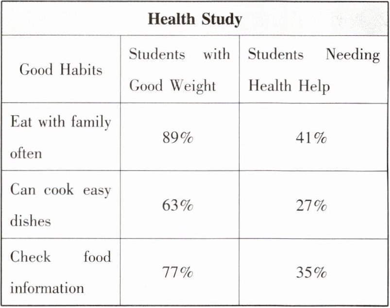 A study asked 1,200 middle school students about their eating habits. Let's see what helps students stay healthy.