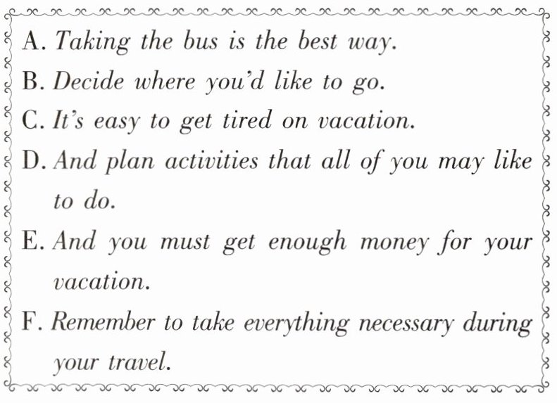 Think about everyone who is going with you. 4. ______ And it also depends on how long you want to stay there.