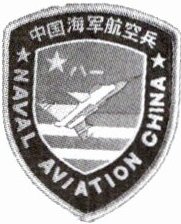 2. 海军航空兵的臂章由两个盾形图案套在一起组成,小盾形外面上方是中文“中国海军航空兵”字样,大写英文字母“CHINA”(中国)、“NAVAL”(海军的)分列两侧,“AVIATION”(航空)位于下端。小盾形内的背景是“八一”军旗,主景是一架飞行的歼击机。