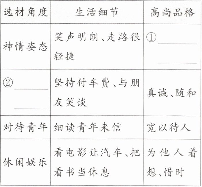 ①乐观开朗 ②对待朋友 ③手稿作他用、吃鱼丸、包书 ④无私奉献