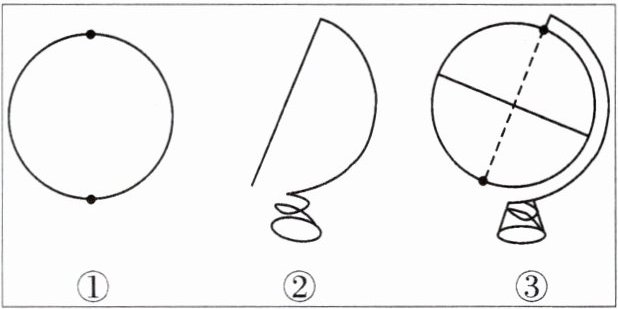 【地理实验】某学校七年级地理兴趣小组动手制作了地球仪。下图显示了其制作地球仪的整个步骤过程。据此,完成 15-16 题。