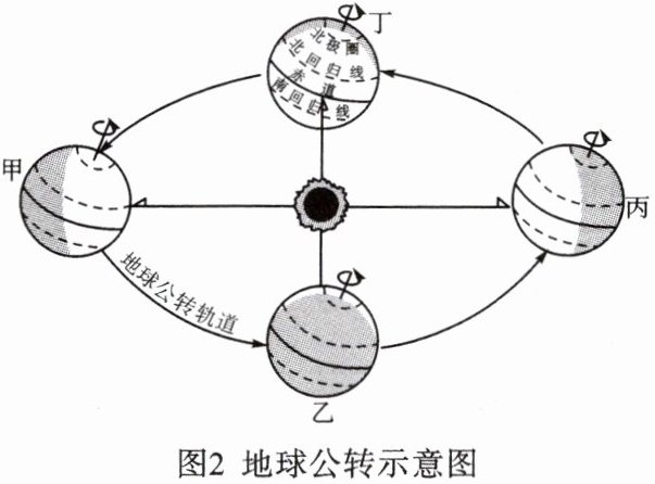 8. 根据图 1,判断该日地球在图 2 中所处的位置是(
