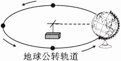 10. 下图为“模拟地球公转演示图”(支架顶部的十字架代表“太阳光线”)。为了保证演示成功,移动过程中我们需要注意(