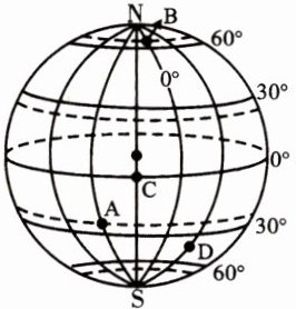 1. 关于图中 A、B、C、D 四点的描述,正确的是(