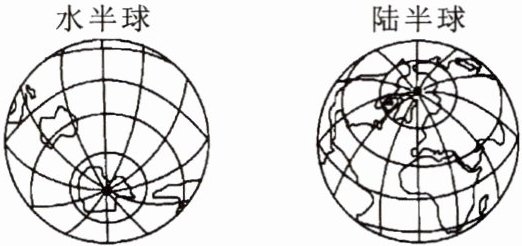 ”粗略地说明全球海洋和陆地面积的比例。2. 从南、北半球看,陆地主要集中在