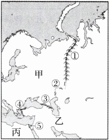 C. ③—乌拉尔山脉 D. ④—白令海峡