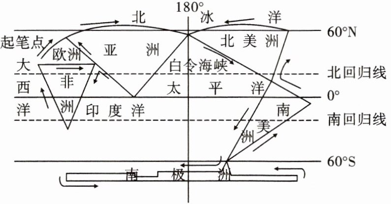 (无锡市中考)某校同学通过“一笔画世界”活动学习世界的海陆分布。读“小顺同学的作品图”,完成12 - 14题。
