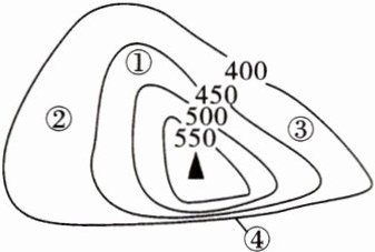 5. 读图,在①②③④四点中,坡度最陡的是(