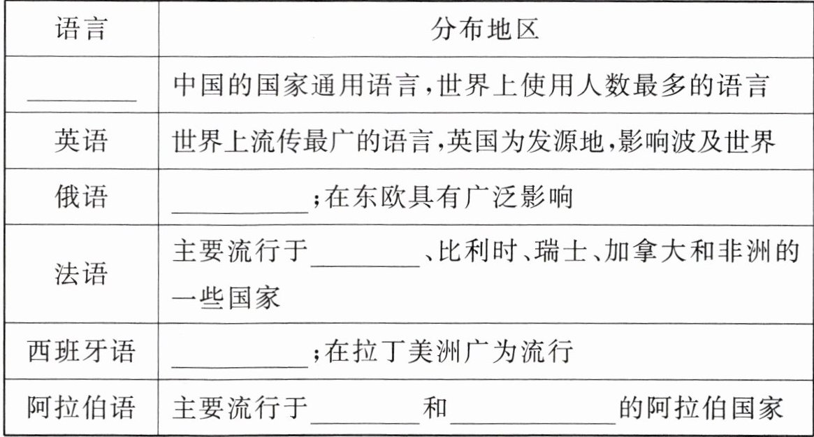 语、西班牙语、阿拉伯语是联合国的官方语言。2. 语言的分布: