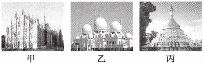 )A.甲是基督教堂,中东地区大多数居民信仰基督教