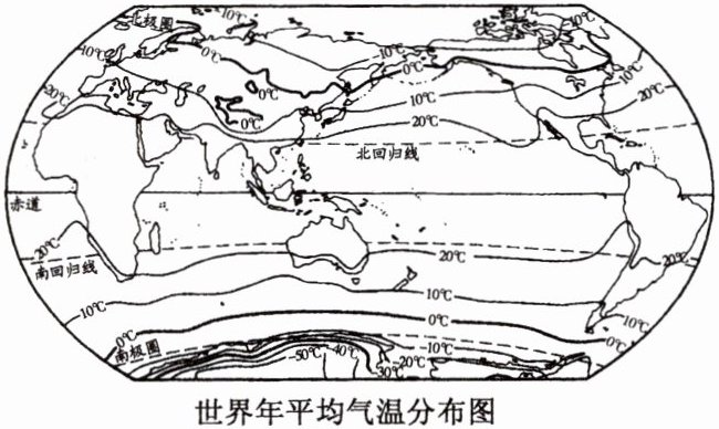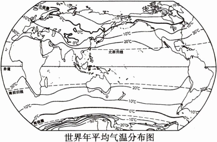 。(2)年平均气温高于20℃和低于-10℃的主要纬度范围,分别大致在