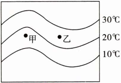 9. (邵阳市中考)读“某地区7月份等温线分布图”,甲、乙两地中有一地为海洋。有关叙述正确的是(