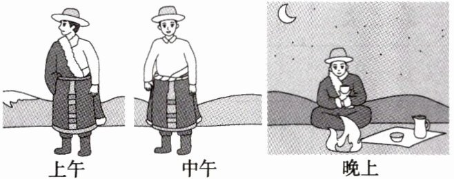 8. 【区域认知】下图是我国青藏地区的传统服饰“藏袍”在一天中穿着方式的示意图,这说明当地气温特点是(
