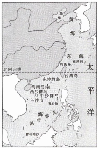 (长沙芙蓉区期末)海南省正在积极推进国际旅游岛建设。右图为“我国大陆濒临的海洋分布图”。读图,完成4-5题。