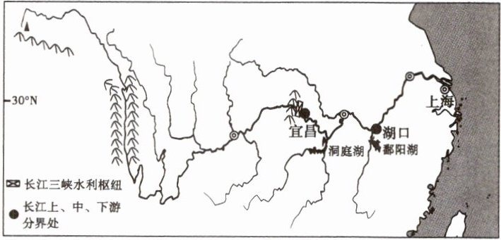 湖泊对河流水量有天然的调节作用。当河流水位高于湖泊时,河水注入湖泊,削减洪峰;当河流水位低于湖泊时,湖水注入河流,增加水量。下图示意长江流域,据此完成9-10题。