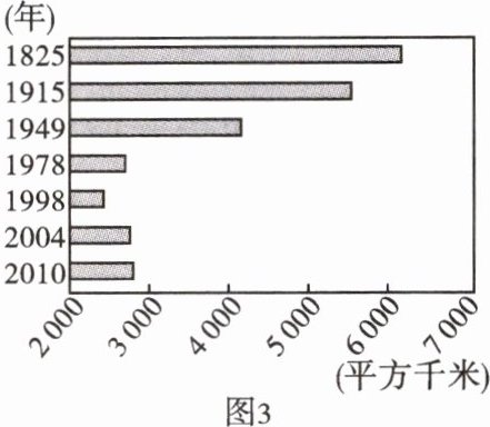 (5)1825 年到 1998 年面积不断缩小,其原因是过度开发农田,导致泥沙淤积,湖泊面积不断减小;1998 年后面积开始增大,其原因是退耕还林、退田还湖等。
