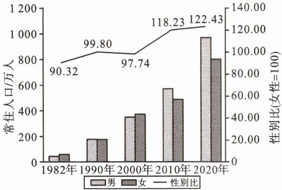 12. 1982-2020 年,该市人口性别比变化的原因主要是(