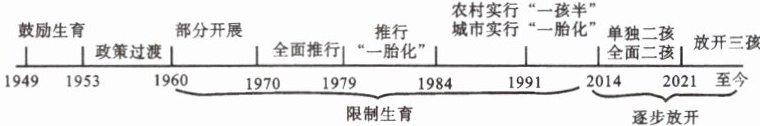 2025 年 2 月 28 日,国家统计局发布数据显示,2024 年全年人口自然增长率为-0.99‰。下图为“1949 年以来我国人口政策的时间演变轴”,据此完成 8-9 题。