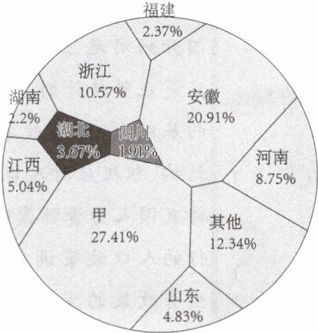 (岳阳君山区期末)2025 年春节期间,上海成为人口热门流动城市。下图为“2025 年 1 月 27 日(腊月二十八)上海流出人口目的地构成图”,据此完成 6-7 题。